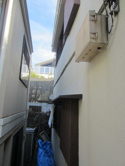 1階の霧除けのモルタルが長年の劣化で落ちてきています。